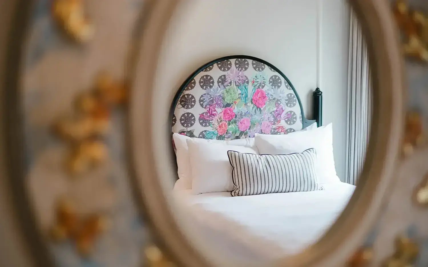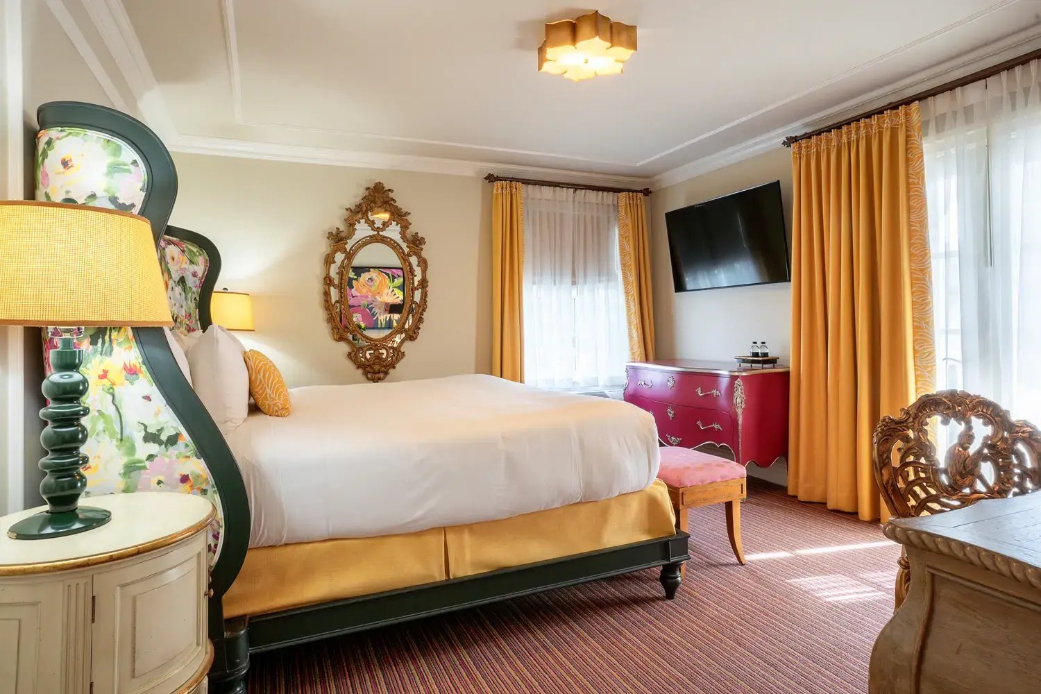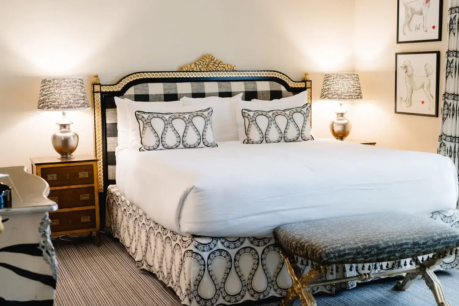 This king room reads like a passport to Paris, complete with courtyard views and whimsical prints.