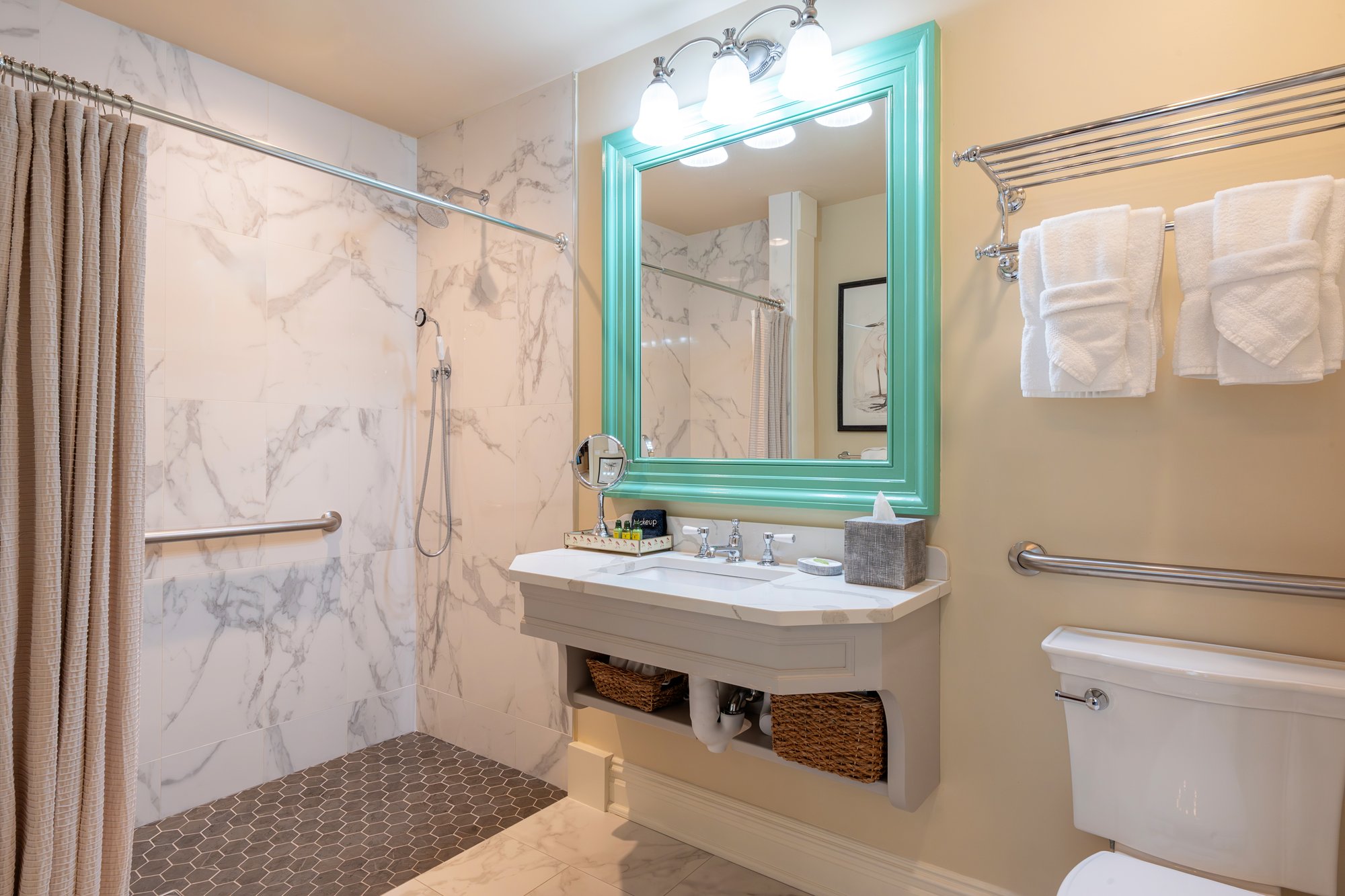 Embrace the spa‑like serenity of this double‑occupancy room decorated in the softest shades of blue, seafoam and cream.