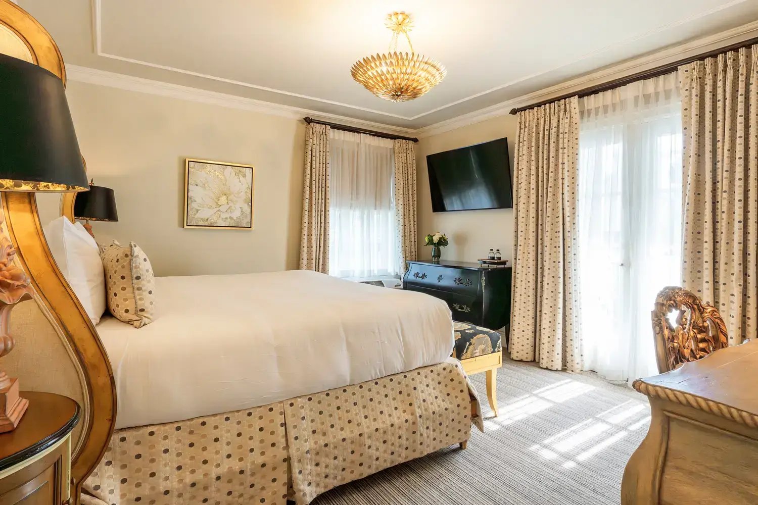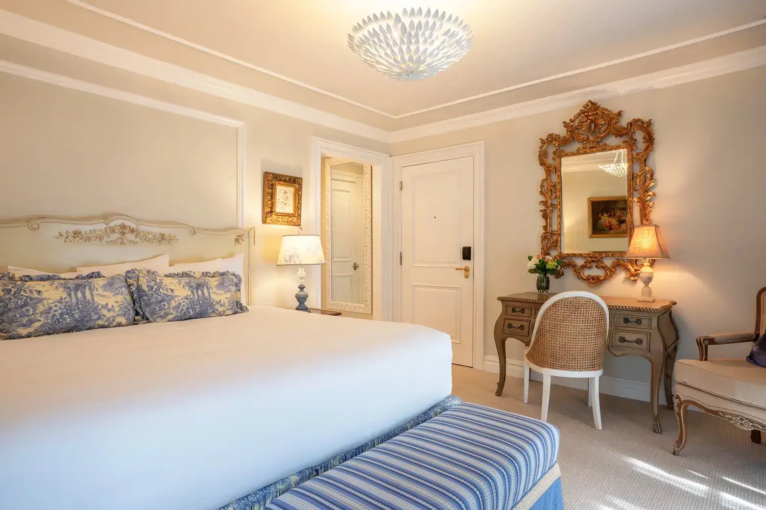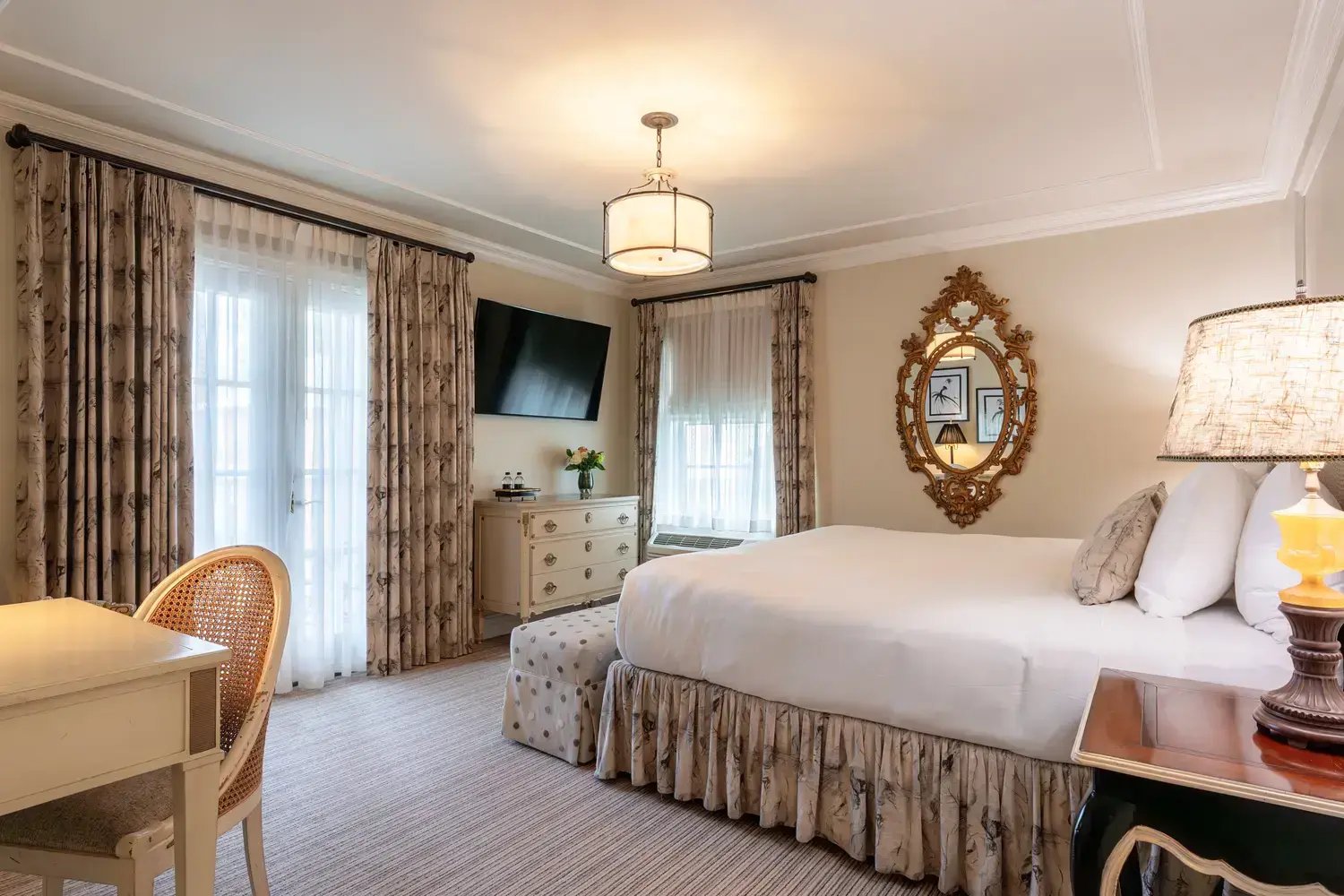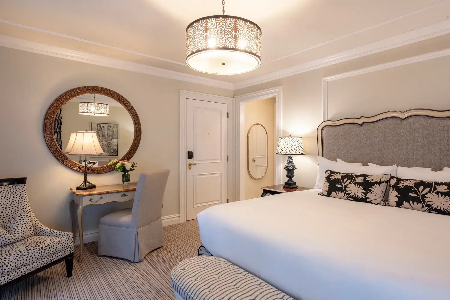 An homage to French provincial style, this king room pairs picturesque views with plush custom furnishings.