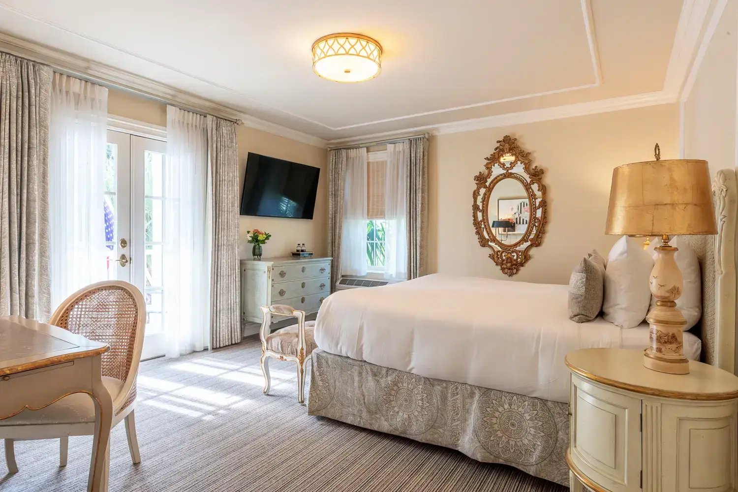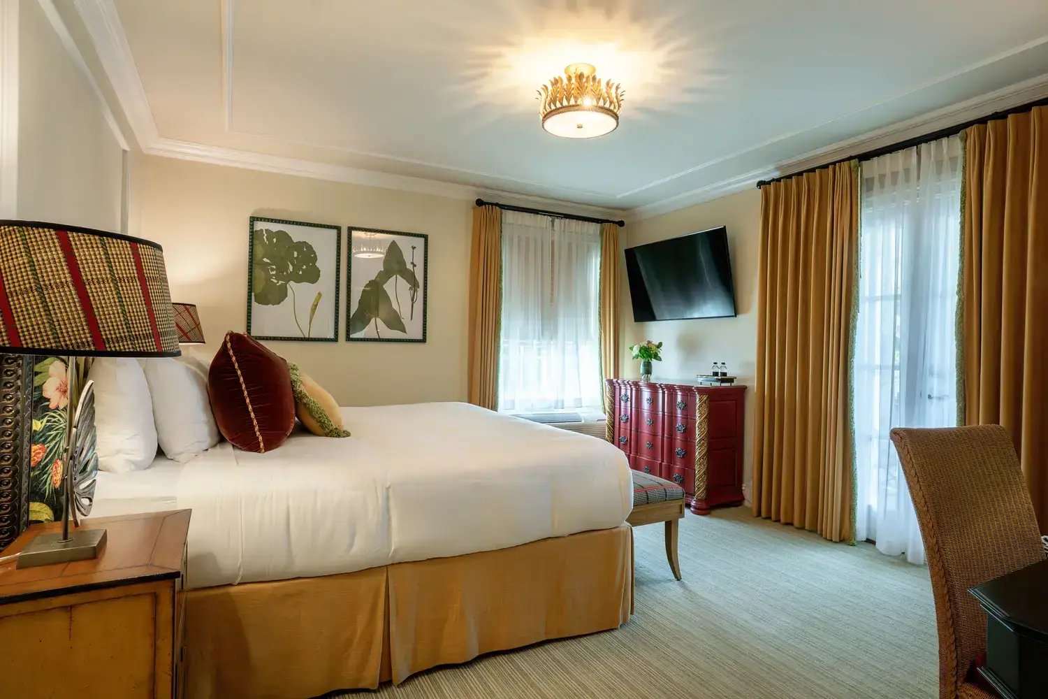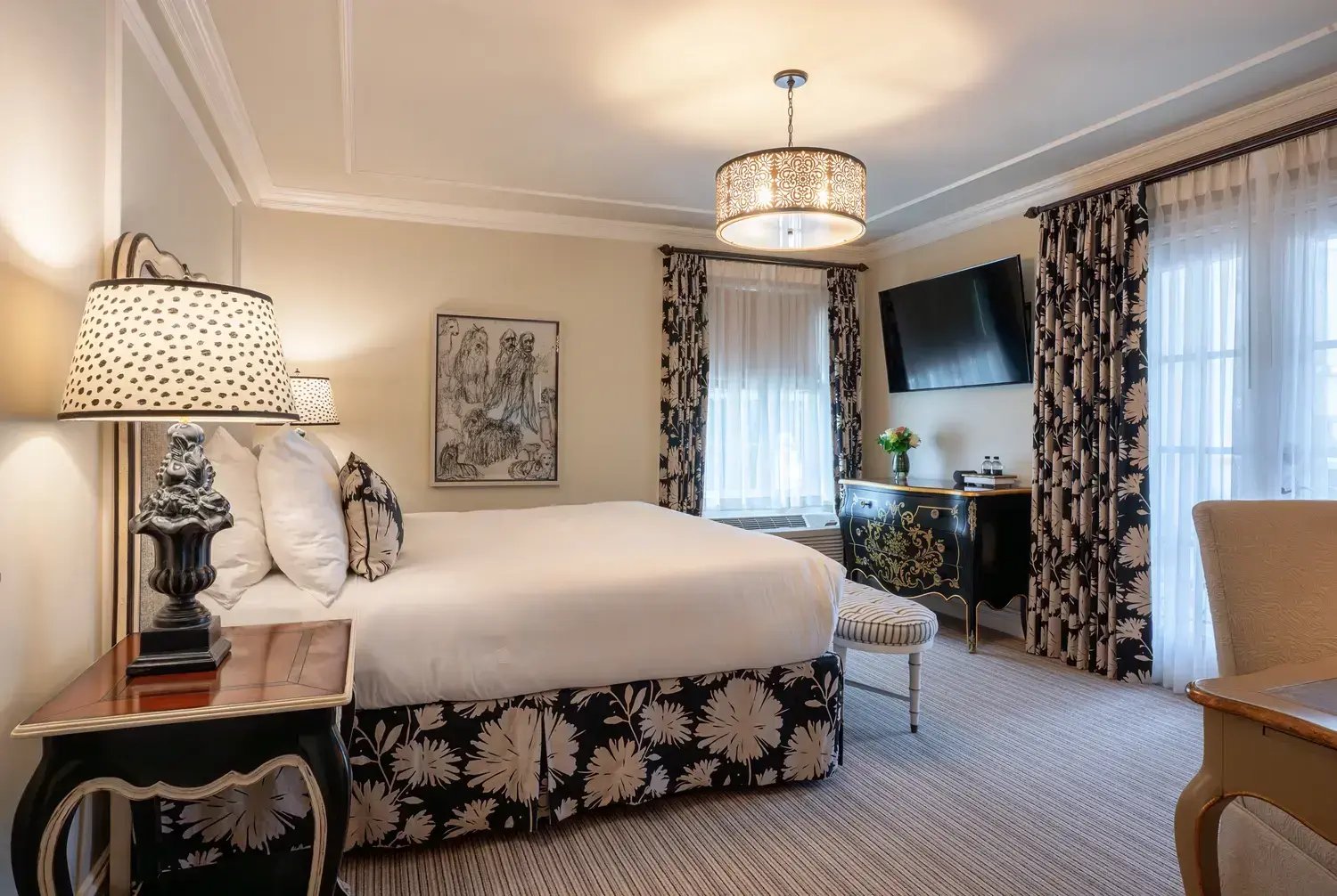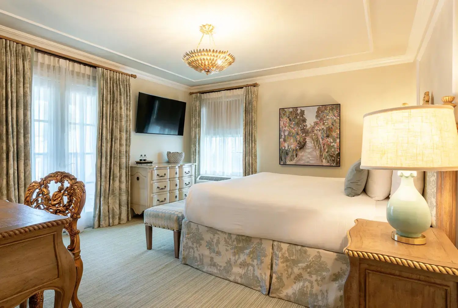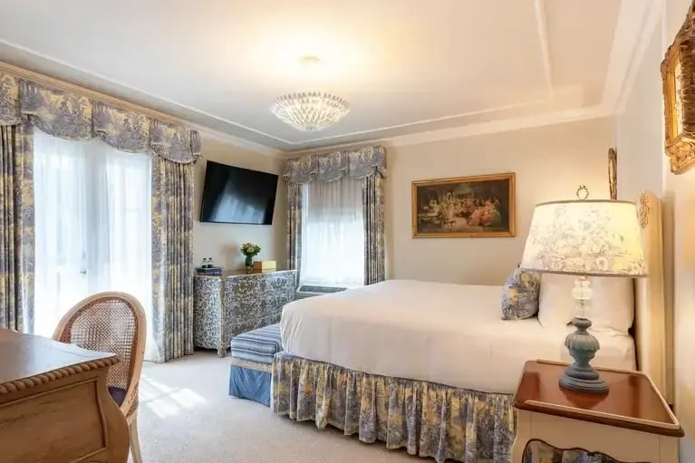 An homage to French provincial style, this king room pairs picturesque views with plush custom furnishings.