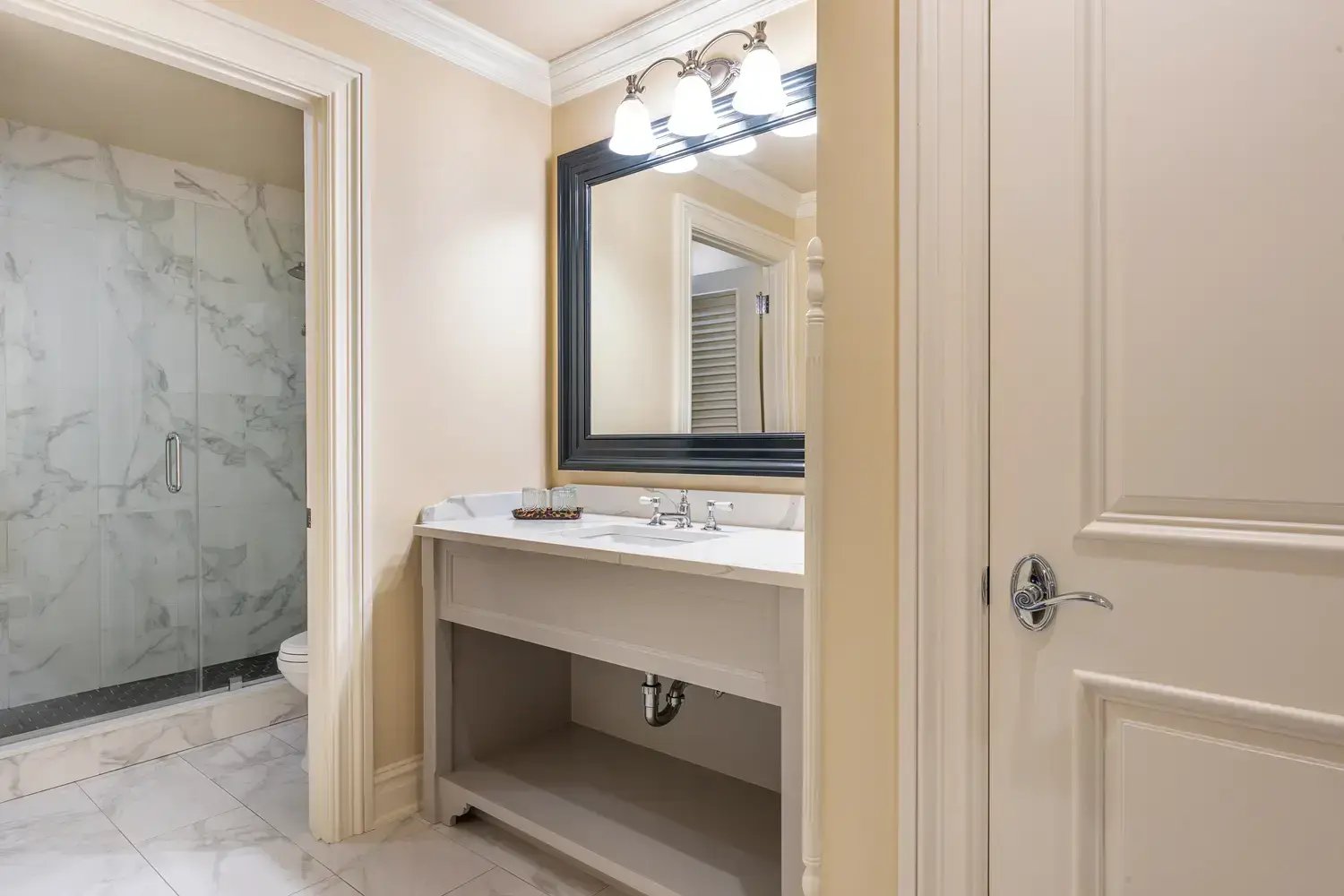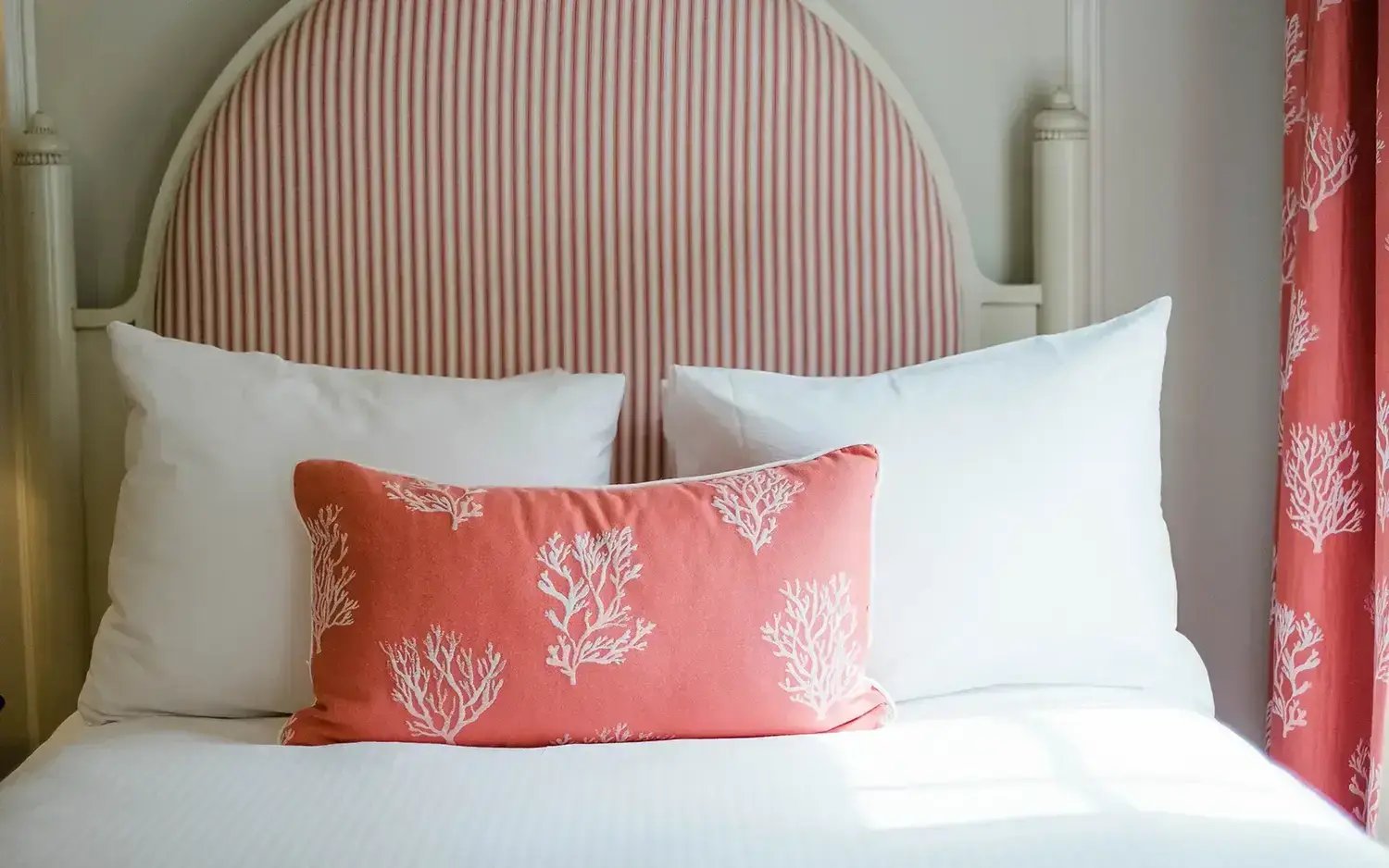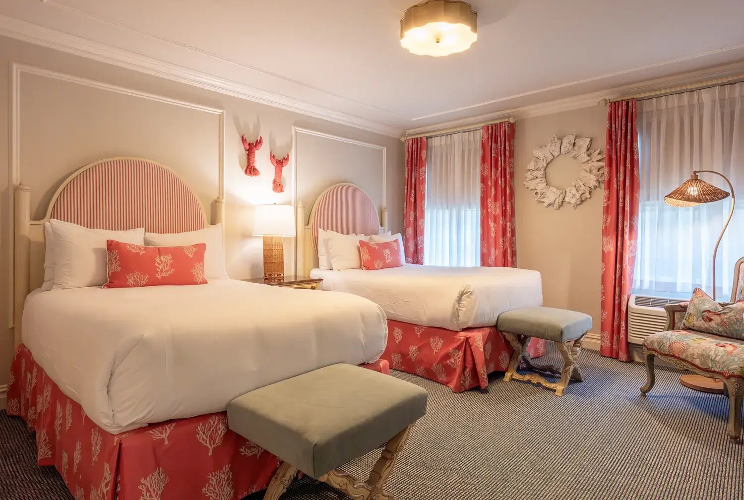 This double room tells a story of Bluffton’s nautical roots, brightly imagined in shades of coral and cream.
