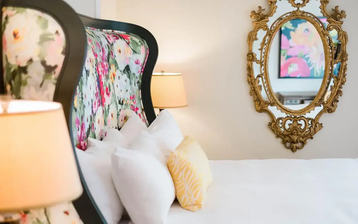 A love story written in shades of pink and gold, this king room celebrates Bluffton’s botanical splendour.